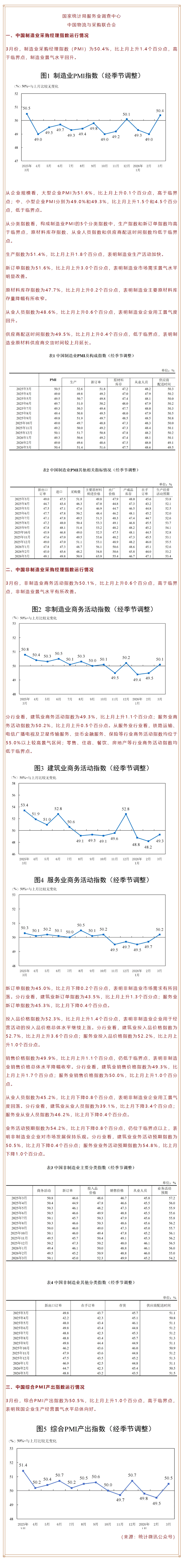 2026年3月中国采购经理指数运行情况