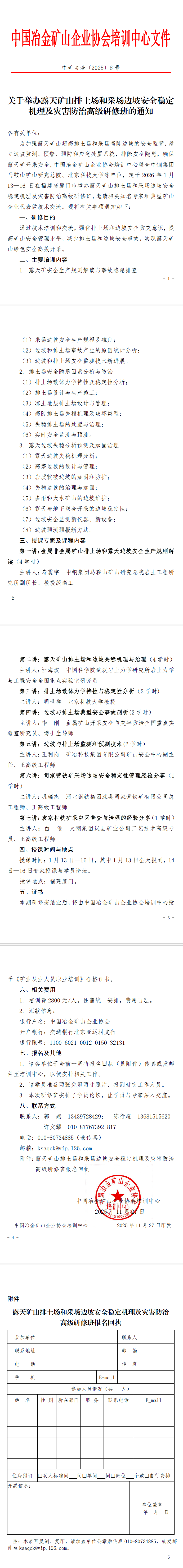 关于举办露天矿山排土场和采场边坡安全稳定机理及灾害防治高级研修班的通知