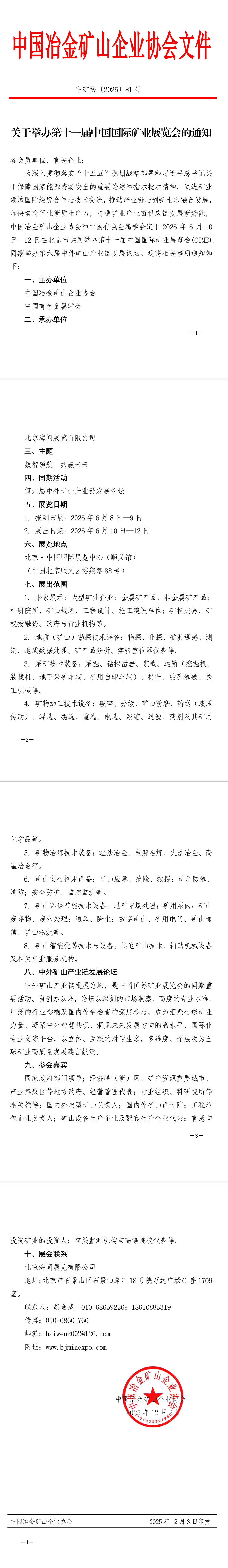关于举办第十一届中国国际矿业展览会的通知
